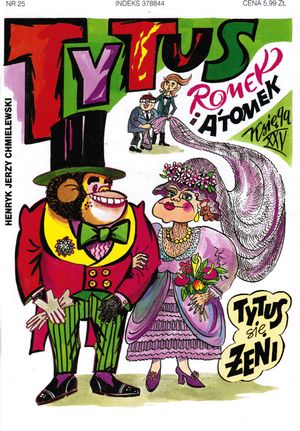 Klasyka komiksu w wykonaniu Papcia Chmiela dla odbiorców w każdym wieku! Księga XXV nosi podtytuł "Tytus się żeni". Pojawia się Szympansia, w której Tytus się zakochuje, w życie bohaterów wkroczyła kobieta. [lubimyczytac.pl].